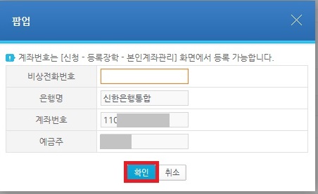 나. 신청버튼후 본인환불계좌확인후 최종신청 완료.