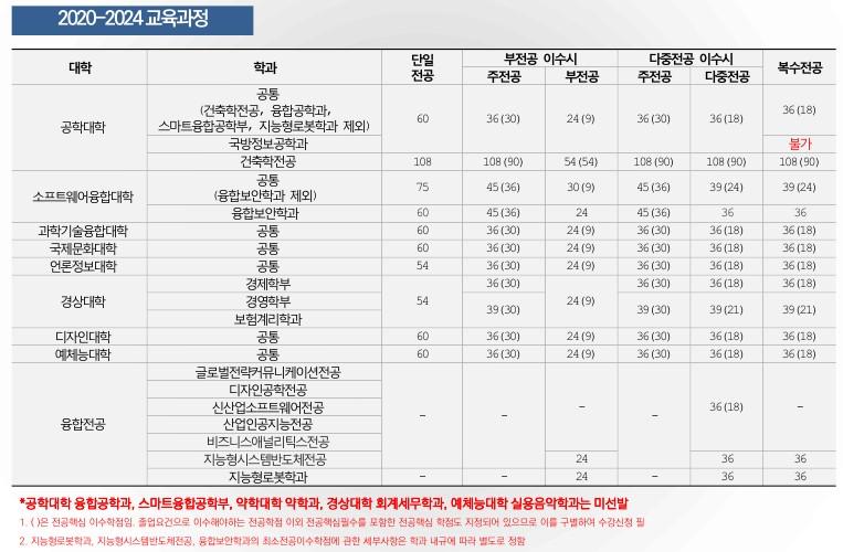 | 예체능대학 | 공통 | 66(36) | 42(36) | 30(9) | 42(36) | 42(21 | 42(21 |