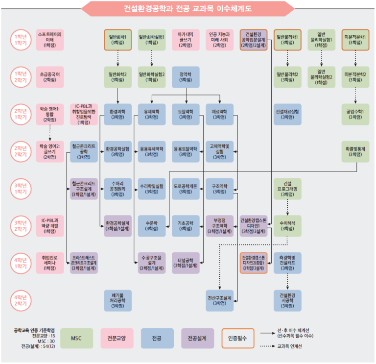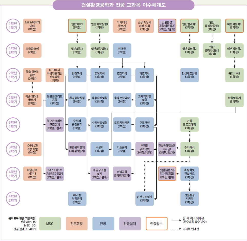 일반물리학1, 일반화학1, 미분적분학1, 건설환경공학입문설계, 건설환경캡스톤디자인2