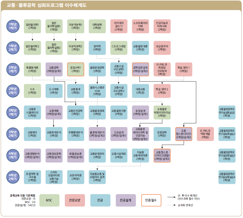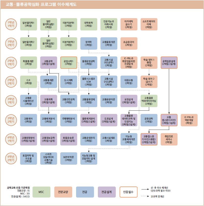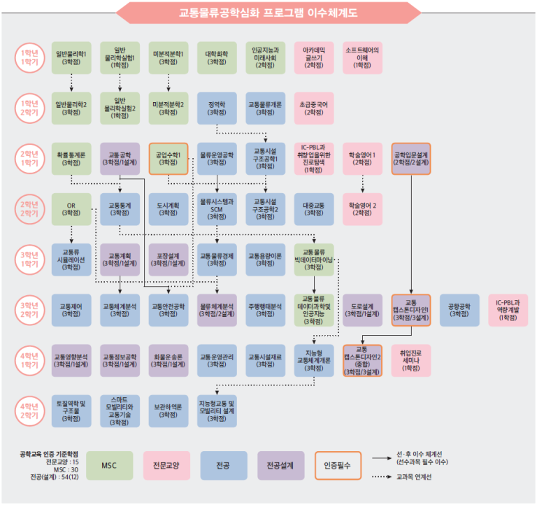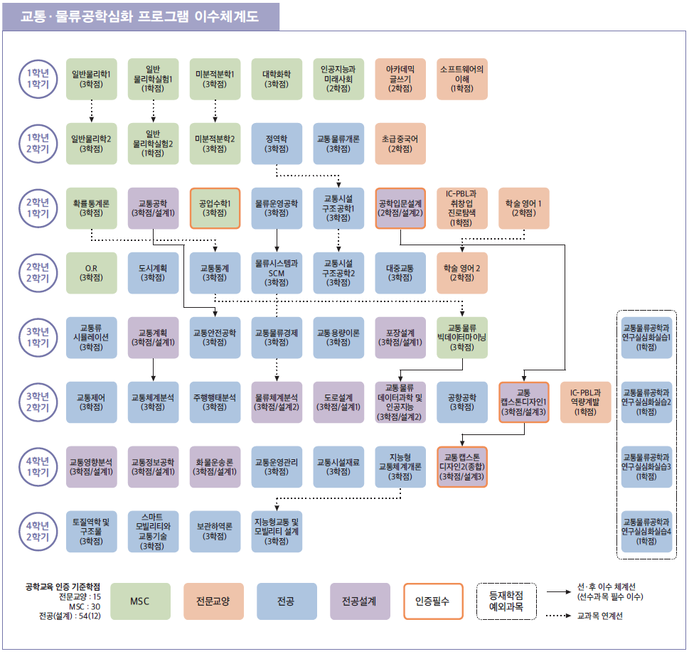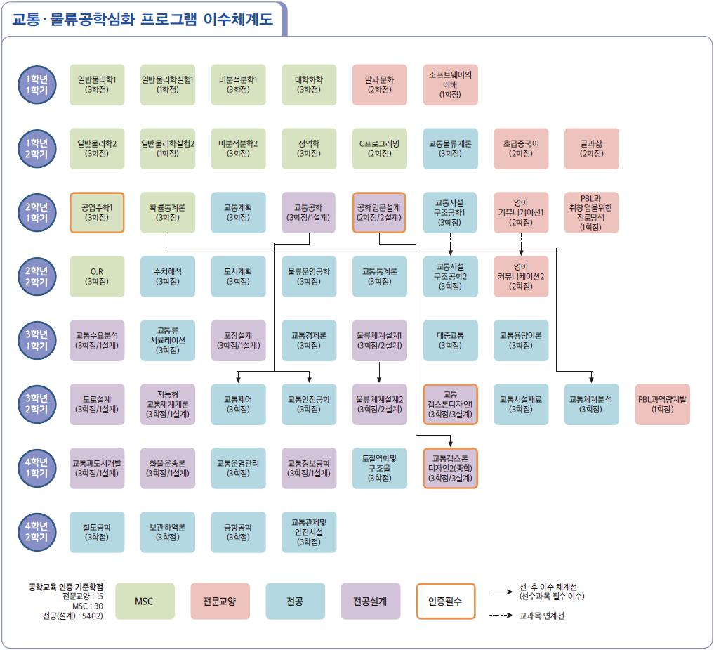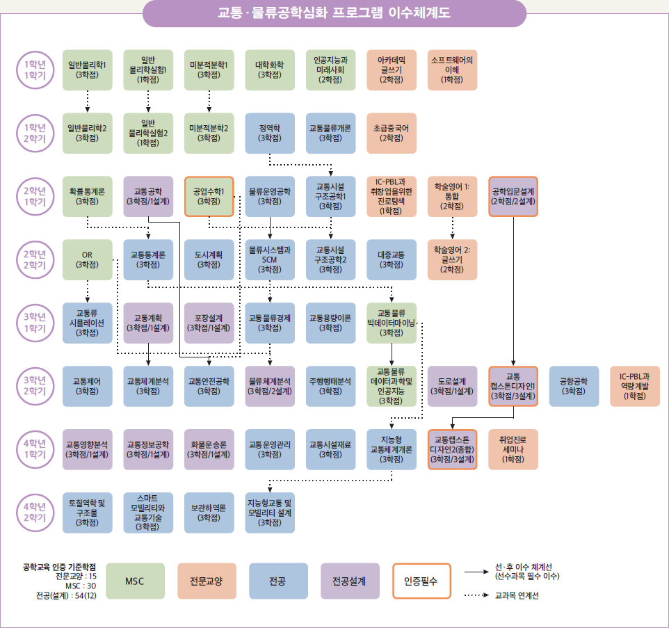 공학입문설계, 공업수학1, 교통캡스톤디자인1, 교통캡스톤디자인2