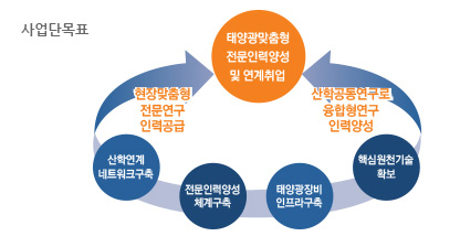 This center has been established for training top-level human resources to meet the growing demand for energyexperts to pursue solar energy-related careers and to provide industry professionals with retraining opportunities. This human resources development is one of the promising future national R&D programs of Ministry of Knowledge Economy in Korea. The center focuses on the foundation system which provides technical professionals to industry and we will organize the consulting groups, joining industry, university and study. Through this program, we expect contribution to the advancement of solar energy fields by industrialization of developing technology as well as vitalization of interchanging technology between industries. Our center is organized by Hanyang Univ., LG Electronics, LIG ADP, and other 17 industries.
