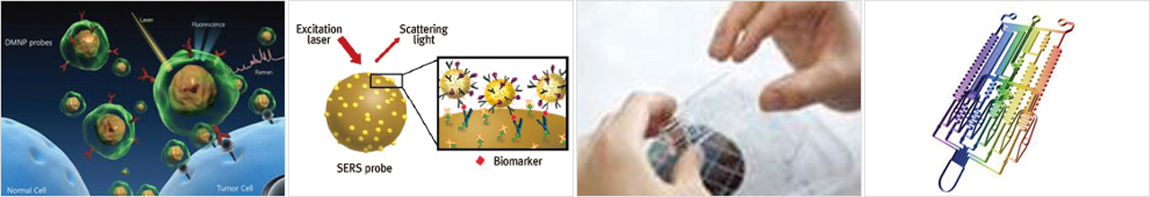 기능성 나노프로브, 바이오칩/바이오센서, 레이저 광측정 기술 등을 통합 적으로 이용하여 암과 같은 난치병을 조기에 진단할 수 있는 분자영상 진단 기술, 혈액이나 요에 존재하는 바이오마커의 고감도 검출 기술 등의 의료 진단 기술과 현장에서 유전자, 단백질, 대장균 등을 실시간 검출할 수 있는 이동형 바이오/환경 센서의 개발 등의 연구를 수행하고 있다.